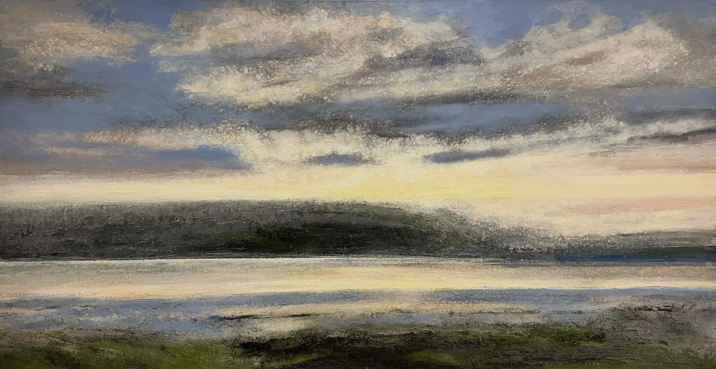 u.t. 60 x 120 cm. akrylmedium, pigment, Mjøs sand på lerrett.