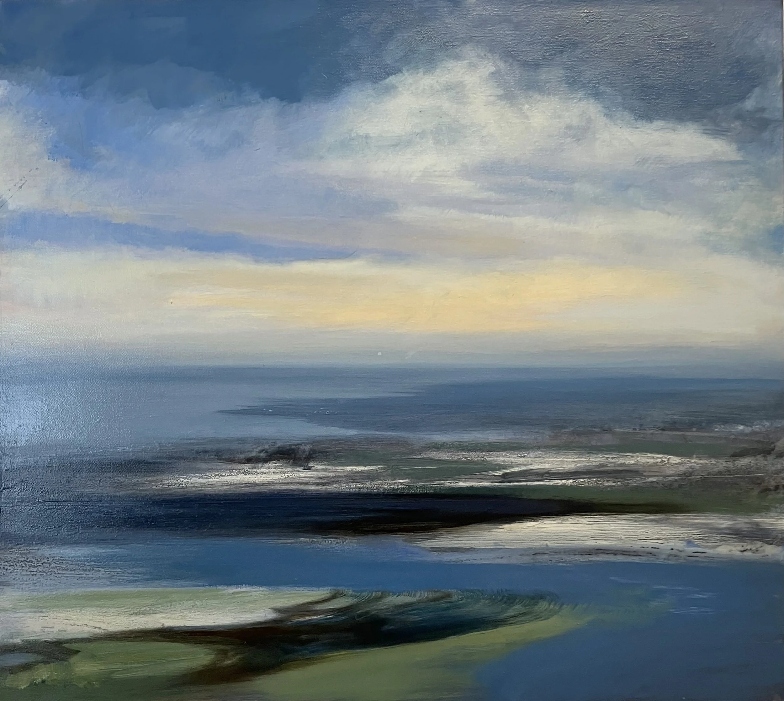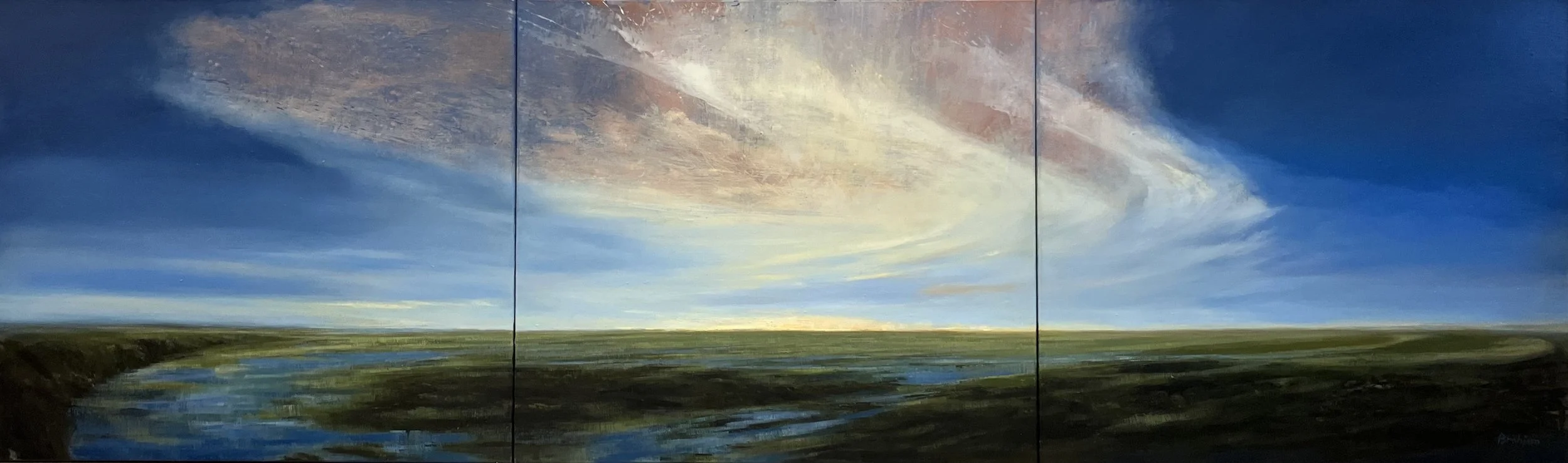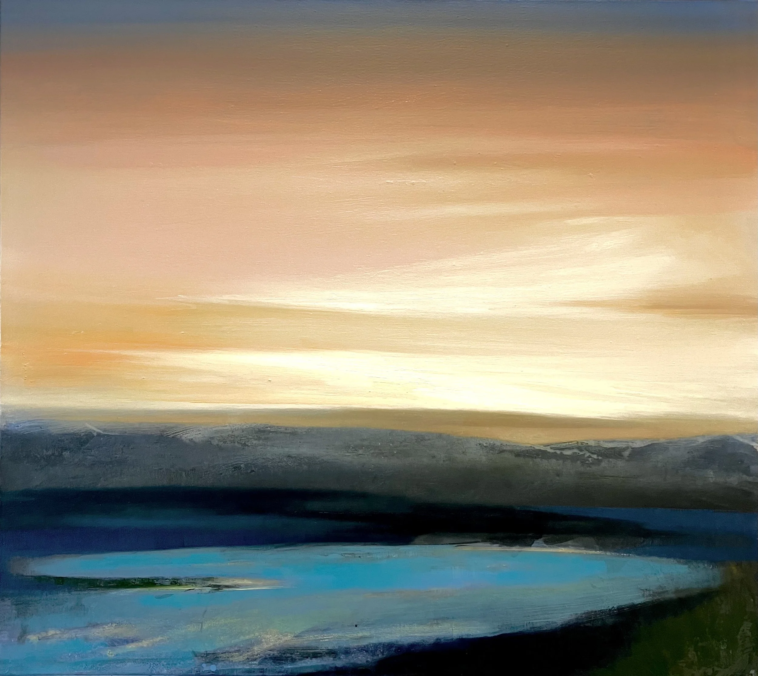 u.t. akrylmedium, pigment, Mjøssand, olje på lerrett. 60 x 240 cm.